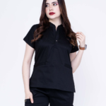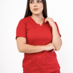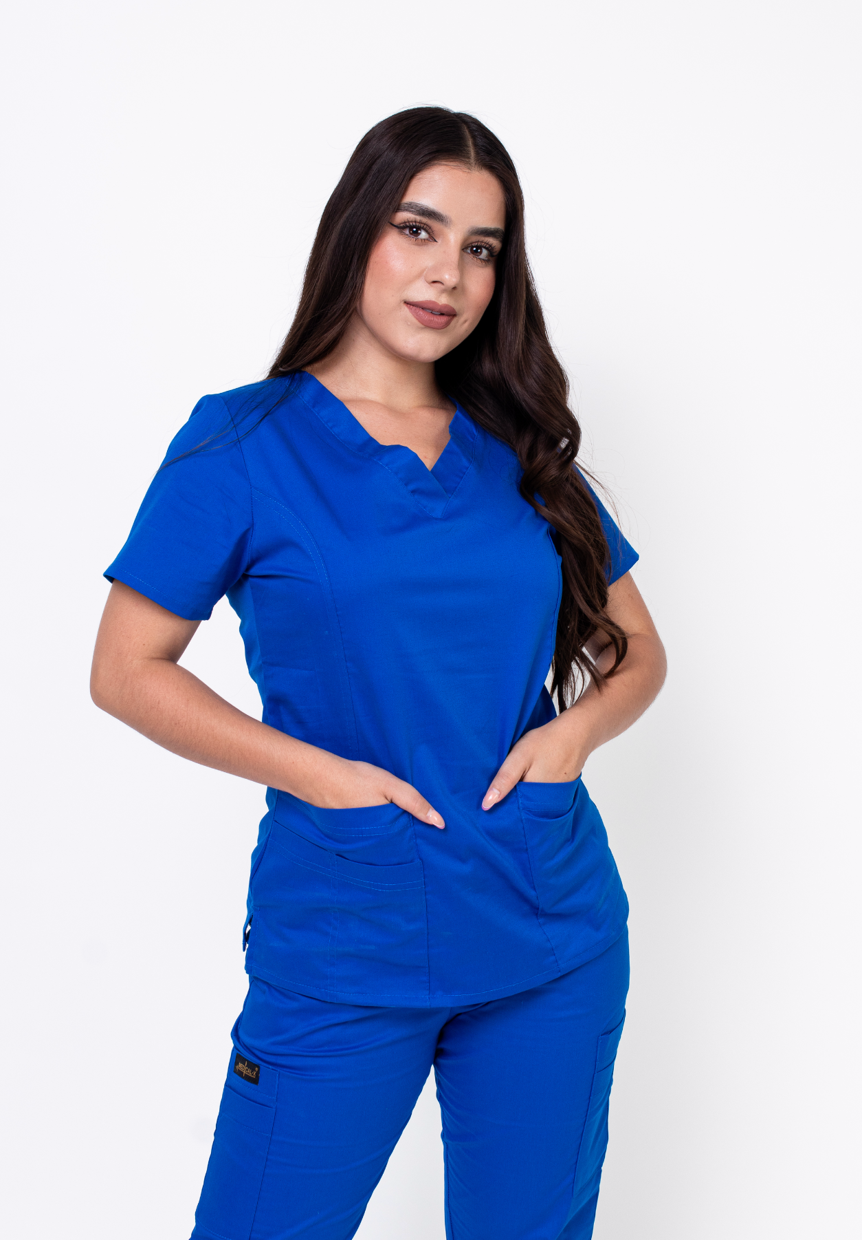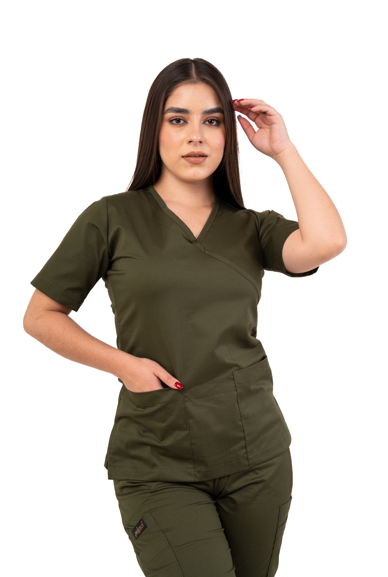 Filipina clásica con bolsas a los costados y escote en “v”.